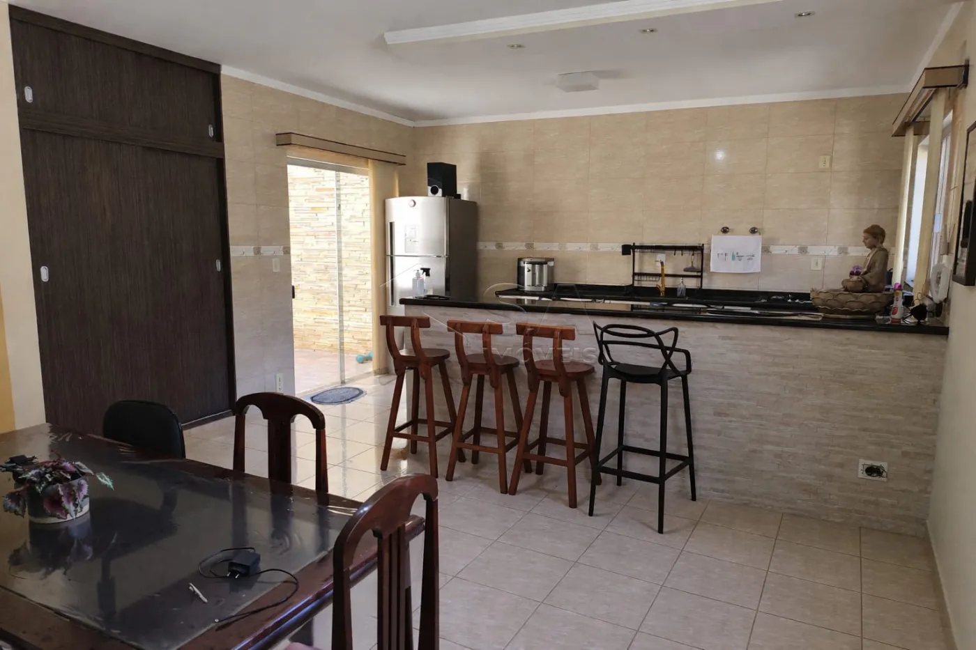 NA ÁREA EXTERNA, UM AGRADÁVEL ESPAÇO GOURMET COM CHURRASQUEIRA E AMPLA MESA DE MADEIRA PARA ATÉ 10 PESSOAS, IDEAL PARA RECEBER AMIGOS E FAMÍLIA. HÁ TAMBÉM UM BANHEIRO EXCLUSIVO PARA A ÁREA DE LAZER, COM MICTÓRIO E VASO SANITÁRIO.