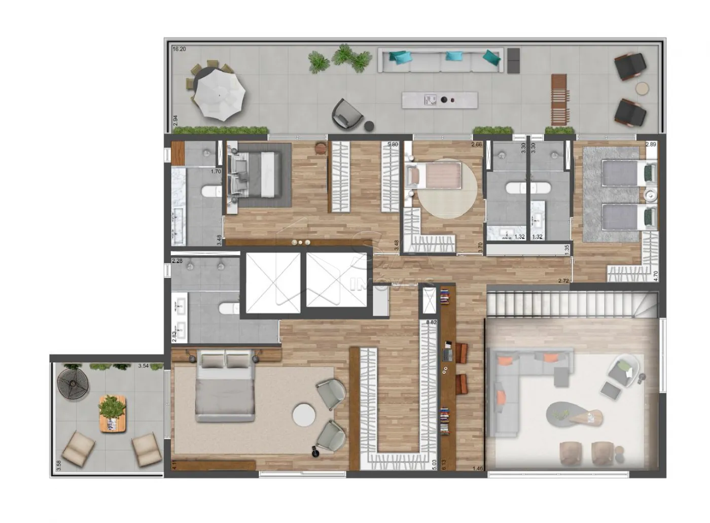 DESTAQUE PARA O ESPAÇO GOURMET E A PISCINA PRIVATIVA, PERFEITA PARA MOMENTOS DE LAZER COM VISTA PRIVILEGIADA DA CIDADE. ACABAMENTOS DE ALTO PADRÃO, AMBIENTES CLIMATIZADOS E ÓTIMA ILUMINAÇÃO NATURAL COMPLETAM O CHARME DESTE IMÓVEL ÚNICO.