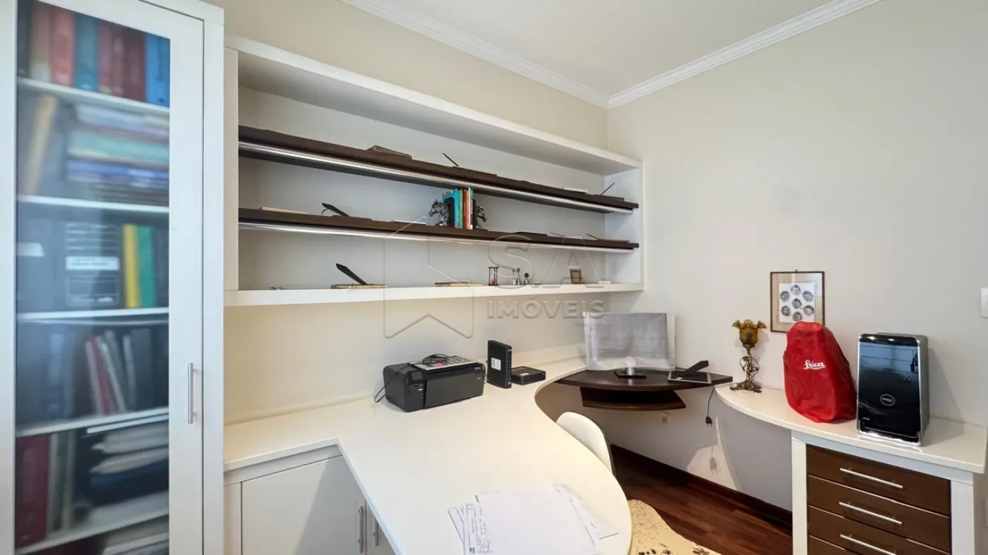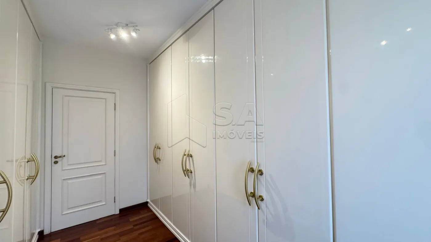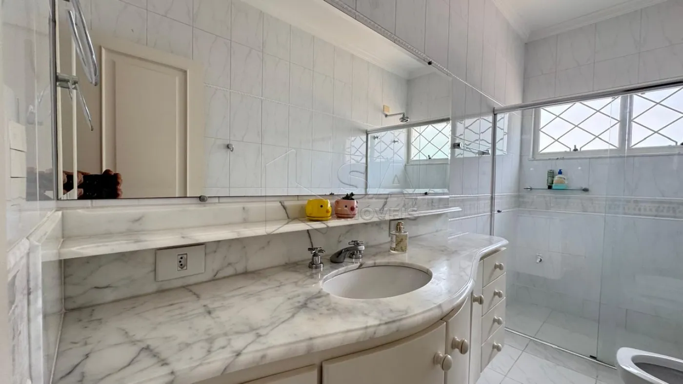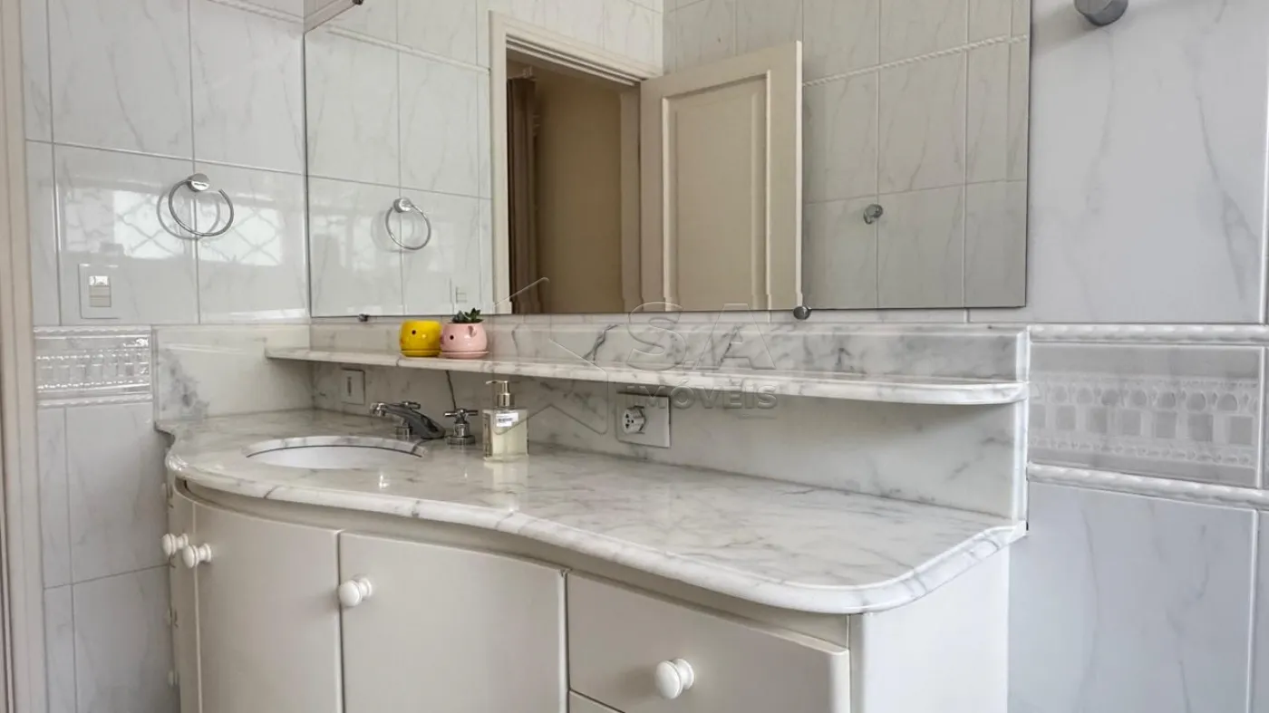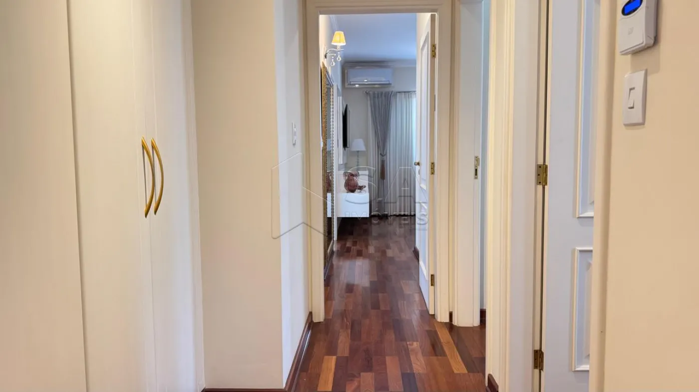 SUÍTE MASTER: PISO TACO, AR CONDICIONADO, CLOSET PLANEJADO, BANHEIRO COM PIA EM MÁRMORE ITALIANO, DUAS CUBAS, BOX BLINDEX E HIDROMASSAGEM.
